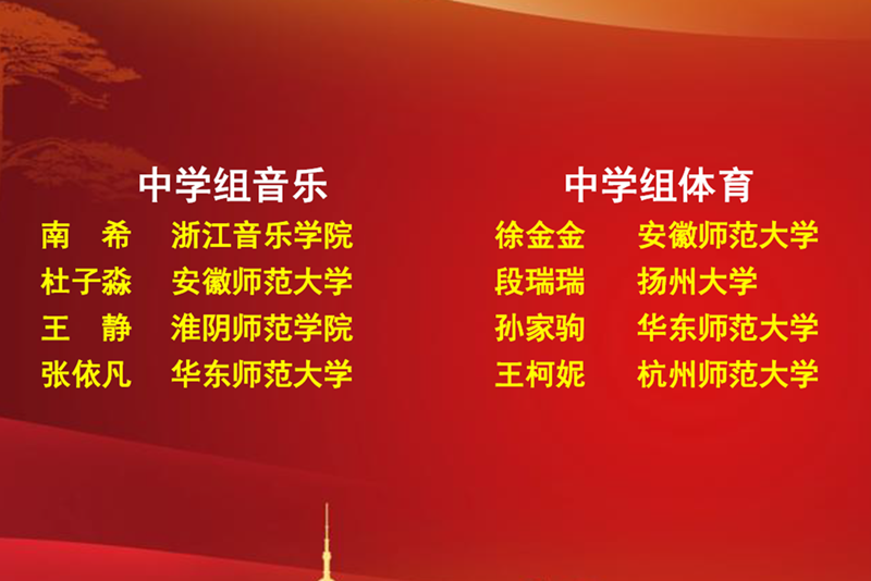 首届长三角师范生教学基本功大赛分中学、小学和学前等3个组别。中学组、小学组竞赛由教学设计、课件制作、即席讲演、有生上课四个项目组成;学前组竞赛主要由教学活动设计和说课、教学基本技能展示、保教活动分析等三个项目构成。经过激烈角逐,淮师必一运动王静同学从“一市三省”17名中学音乐参赛选手中脱颖而出,荣获中学组音乐一等奖。