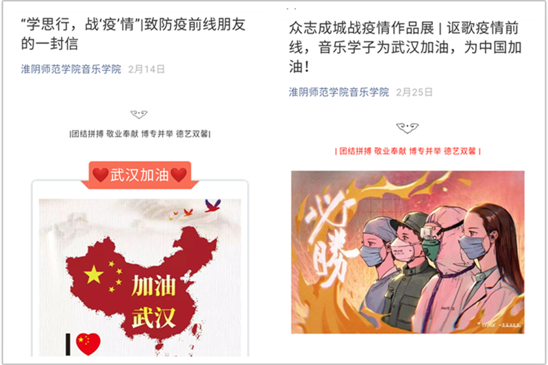 发起一次抗疫作品征集。在音乐和舞蹈专业员工自发以专业优势重温红色乐曲,演绎经典舞蹈的过程中,为打赢疫情防控阻击战加油鼓劲,在民族自豪感和爱国情感的交融中,“舞”动青年报国志,奏响抗“疫”最强“音”;在一封封饱含亲情的家书中,延续优良传统,汇聚浓浓言思,显示员工才情;在经典文学作品与影片的品味中,鼓励同学们分享奇思妙言、美词佳句,在互动分享中形成比学赶超的积极氛围。通过征文、漫画、信件、短视频、音频等多种形式,组织一场“众志成城战疫情”线上作品展示活动。记录抗疫时光、暖心故事,歌颂抗击新型冠状病毒肺炎过程中涌现出的先进典型和感人事迹,弘扬社会主义核心价值观,铸烁爱国主义精神。