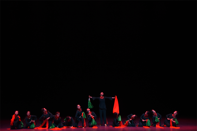 下半场一首《唐印》借唐三彩仕女俑从雕塑到复活的所见所舞,一窥大唐丰腴自信,奔放瑰丽的历史风貌。《惑心》表达了每个人都有两面,一面是天使,一面是魔鬼,我们要去压制自身的魔鬼,释放出善良的天使。《花儿为什么这样红》时而静谧时而激荡,时而含羞时而奔放;舞裙随着少女的心思或开或合、或沉或起;影影绰绰、袅袅婷婷。《风雨红棉》热血点燃英雄的花,他们在刀丛中化作天边不落的星星,愈发明亮。《钟馗》寄托和传达出人们大众对美好生活的浓浓情思和祝福祈愿。《水的女儿》用傣族动律,带我们走进了傣家寨,看到那些似水般的女子,体现了女性水般柔美和坚强。