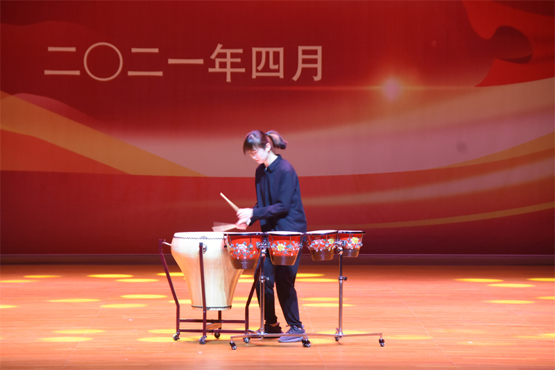 陕西《跑旱船》中同学用笛子为大家描绘了农村过年时欢快、热闹的场景,农民们会自动组织起来,耍龙灯、跑旱船、出花会等活动。这边《映山红》为我们又呈现了一幅山上遍地开满了映山红的景象,表现了红军一路走来的艰辛不易。打击乐作品《龙腾虎跃》和《十面埋伏》的鼓声激昂澎湃,一声又一声的鼓,让整个表演变得丰富多彩。