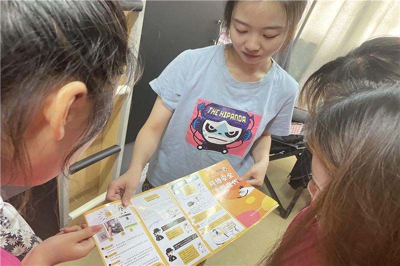 图为同学们学习宣传手册。记者 马媛媛 摄