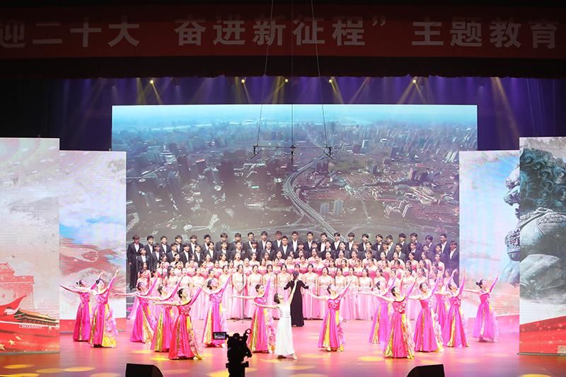 活动以中国共产党团结带领全国人民从站起来、富起来到强起来的历史脉络推进,共分为《抗争》《追随》《领航》三个篇章,以美妙的音乐、铿锵的语言、嘹亮的歌声、灵动的舞蹈,讴歌党的丰功伟绩,喜迎党的二十大胜利召开,表达永远跟党走、奋进新征程的决心。