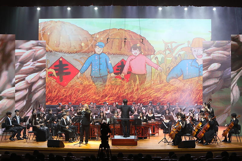 “吃水不忘挖井人”“没有共产党就没有新中国”,活动在合唱《在灿烂阳光下》中拉开帷幕,朴实的情感,优美且高昂的旋律,讲述了中国共产党团结带领全国人民走过的风雨历程,赞颂了新中国成立以来所取得的伟大成就。《保卫黄河》《黄河颂》《战旗·刘老庄》《云想花想》等节目,用音乐描绘出革命先辈们保家卫国英勇抗争的爱国豪情,演绎出中华民族顽强不屈的奋斗精神与革命意志。女声独唱《我的祖国》委婉动听,甜美的歌声将第二篇章的主题《追随》深情引入。《追随》《我心中的红》《唱支山歌给党听》演绎出全国人民永远跟党走的坚定信念。第三篇章通过《扬鞭催马运粮忙》《海棠》《诗颂风华》《领航》来展现全国人民在中国共产党的领导下取得丰功伟绩的光荣图景,书写党带领人民昂首阔步迈向新征程建功新时代的华章。