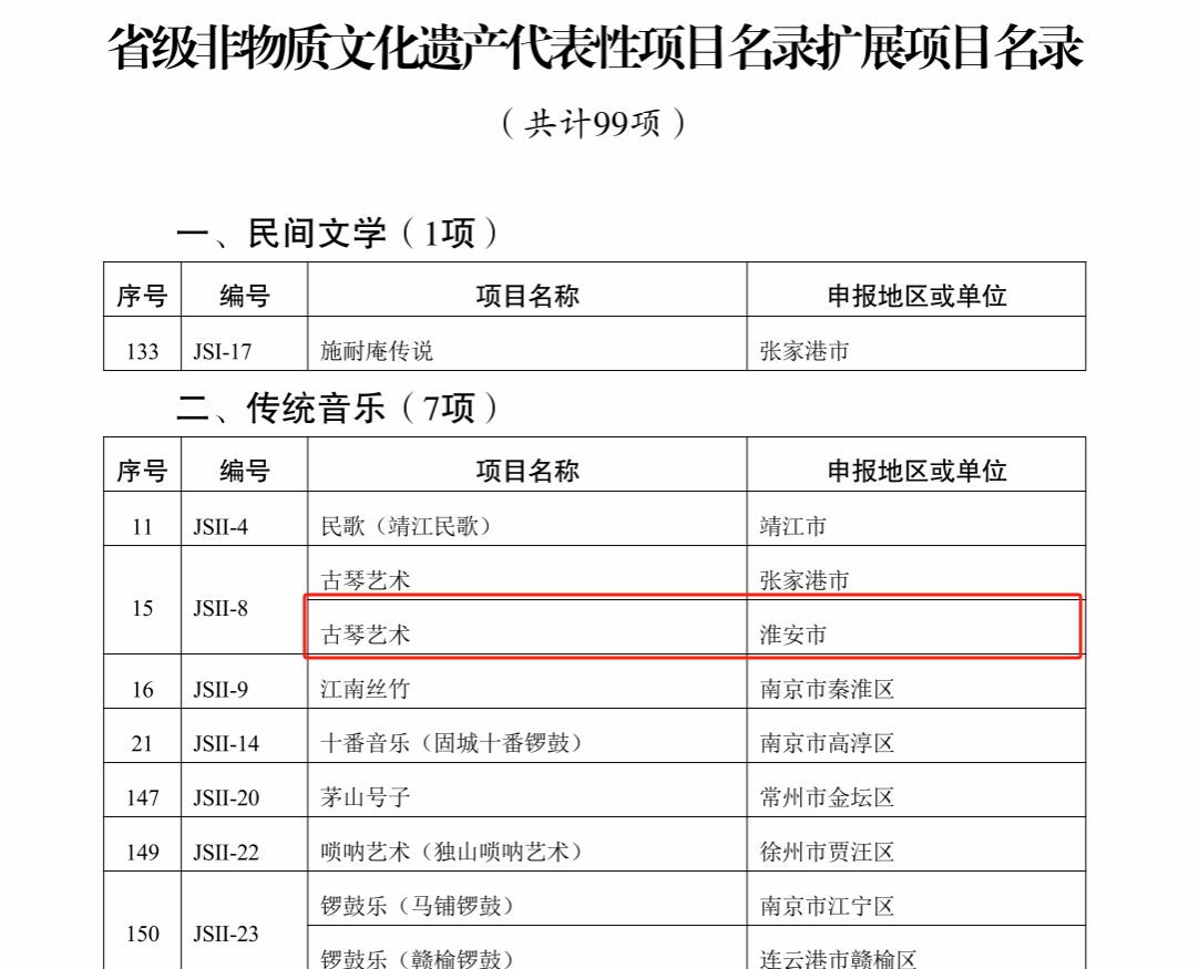 淮安“古琴艺术”入选江苏省第五批省级非物质文化遗产代表性项目