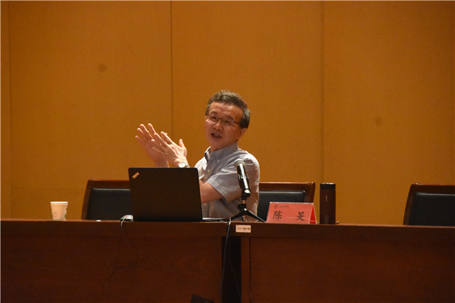 陈老师讲解的主题为“提升艺术素养,演绎精彩人生”。他结合自己的人生历程分别从历史、艺术、人生等方面进行动情地解说。谈及历史,他以淮安地方特色为切入点,小到美食,大到周恩来精神,整个讲解过程绘声绘色,引人入胜。除此之外,陈老师还细致入微地阐发了自己对艺术素养的理解,并独具慧眼地点出——“艺术是高雅的,是不平庸的”。最后,整个演讲的主题自然地升华到“演绎精彩的人生”、学会创造人生、“忆苦思甜”上来,并鼓励同学们通过不懈努力追求幸福精彩的人生,享受不平庸的人生。