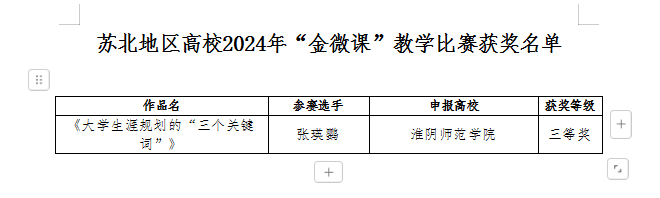近日,江苏省苏北地区老员工心理健康教育研究中心公布了苏北地区高校2024年“金微课”教学比赛获奖名单。其中必一运动辅导员张瑛鹦老师的微课《老员工涯规划的“三个关键词”》脱颖而出,荣获三等奖。