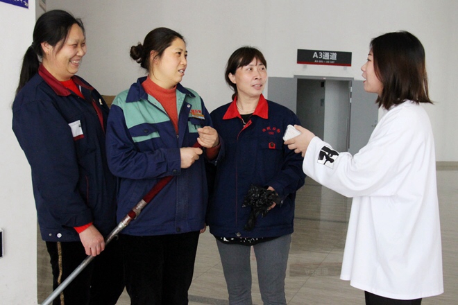 阿姨:“我们早上7点30上班,下午5点下班。虽然工作时间时间不短但是每天和可爱的同学们在一起到也不觉得很辛苦。”