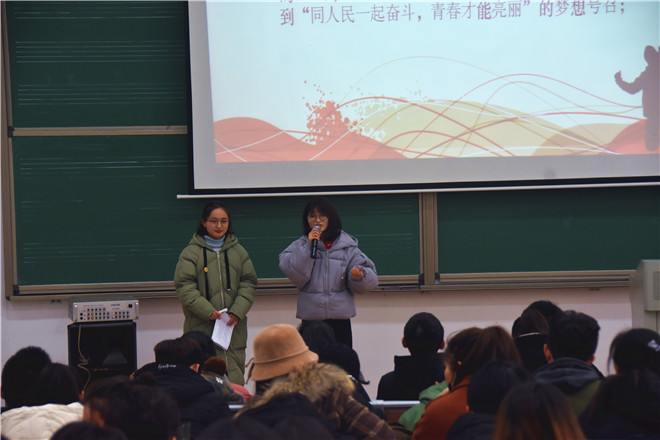 党的十八大以来,习近平总书记多次通过演讲、座谈等方式与青年频频互动,对当代中国青年寄予殷切期望。2014年5月4日,习近平在北京大学考察。这是习近平在校园观看北大师生纪念五四运动95周年青春诗会时同朗诵者亲切交谈。本次讲座,吴冬梅同学从习近平总书记“年轻人不要老熬夜”的贴心关怀,到“青年兴则国家兴,青年强则国家强”的希望寄语,从“人生的扣子从一开始就要扣好”的语重心长,到“青年大有可为、大有作为”的信心砥砺,句句复述无一不语重心长。吴冬梅同学还提到:“现在,青春是用来奋斗的;将来,青春是用来回忆的”。谆谆教诲,也无不使在场的每一位同学如沐春风,茅塞顿开。使习近平总书记对青年的关怀浸润每一位中国青年的心田,烙印在每一位中国青年的奋斗征程上。