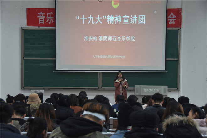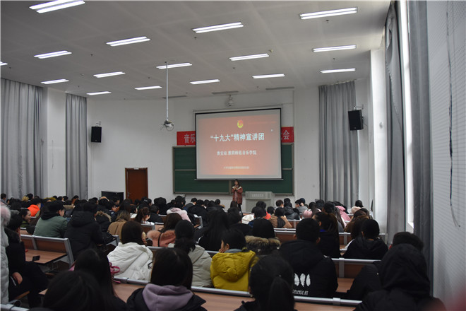 为深入学习贯彻党的十九大精神,推动习近平新时代中国特色社会主义思想深入人心,在全院青年团员中形成广泛共识。1月22日,必一运动团委按照校团委的统一部署,特邀校老员工党的十九大精神宣讲团成员马克思主义公司吴冬梅同学在音乐楼A1-111阶梯教室开展“全面推进十九大精神进课堂”主题宣讲活动,公司团委书记涂聪老师、团委副书记王念老师、团委副书记陈佳艺同学和17级全体同学共同参加活动。