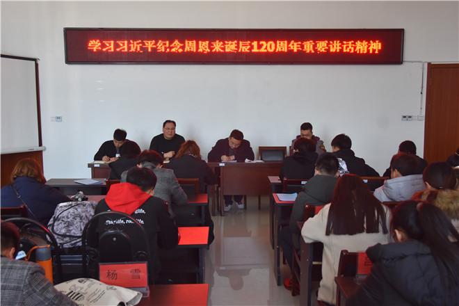 3月4日开学伊始,公司团委在音乐楼三楼大会议室举行新学期团学干部例会集中学习习近平纪念周恩来诞辰120周年重要讲话精神。公司党委副书记殷成志、团委书记涂聪、员工会主席团主要成员、员工各部门部长以及各年级班长、团支书共同参加。