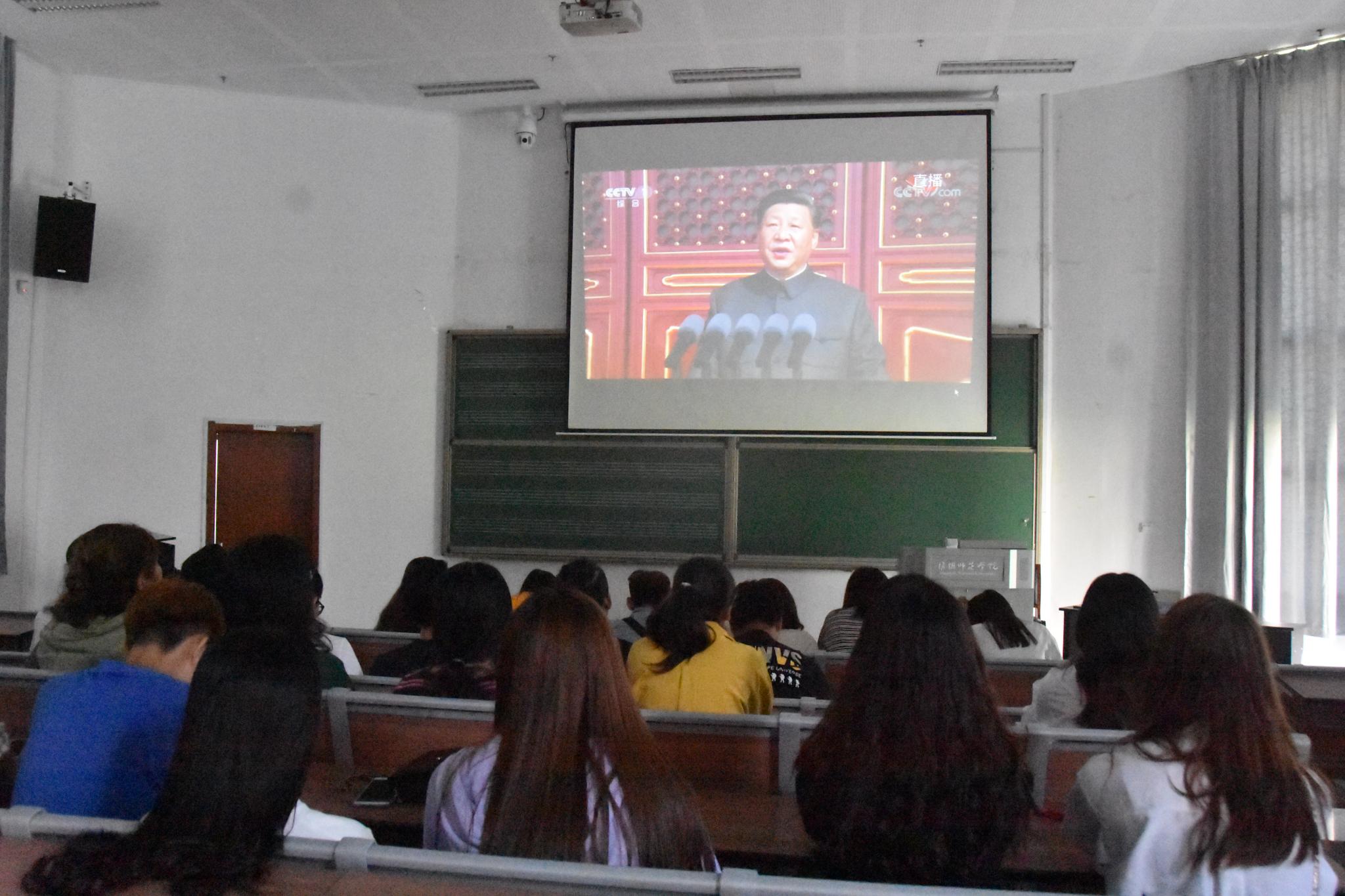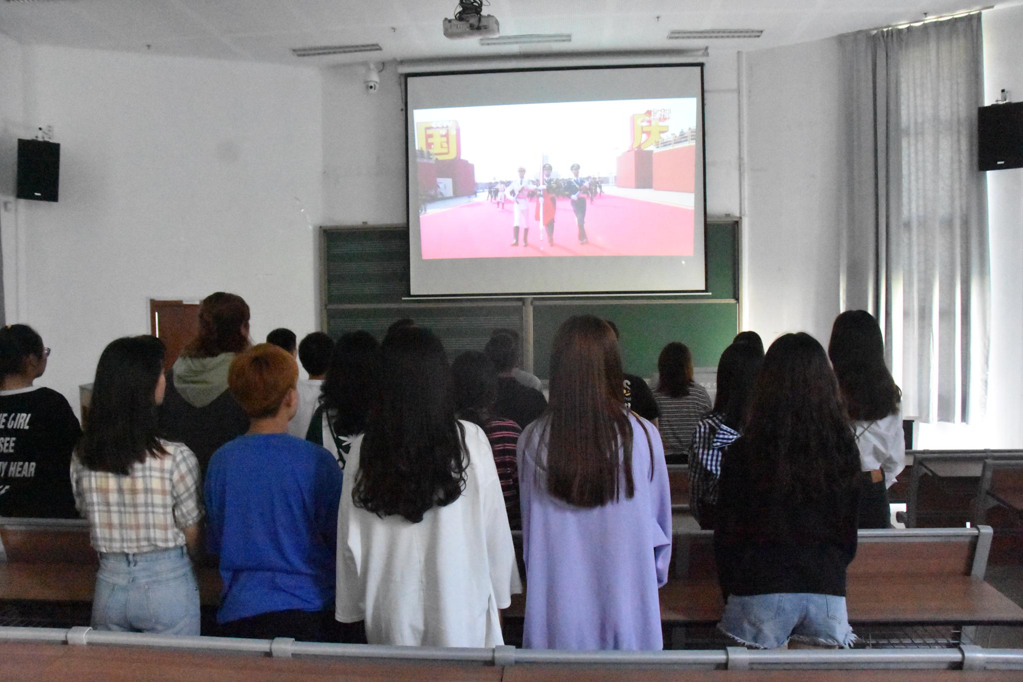 为庆祝新中国成立70周年,激励同学们树爱国心、笃报国志,积极投身新时代的伟大征程。10月1日上午,必一运动组织全体留校员工在音乐楼A1-111教室观看庆祝中华人民共和国成立70周年大阅兵和群众游行直播。