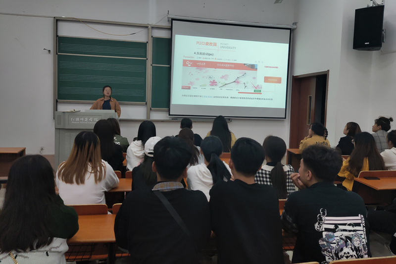 时堉馨首先以细致全面的PPT展示培训的主要内容,尔后,就PU平台的作用和功能进行详细的介绍,并通过对平台注册、校园部落管理、活动发起至活动结束的操作方法、二维码扫描签到等几个方面的逐一演示和讲解,给同学们做出具体的分析与解答。最后,时堉馨结合自己对PU平台的使用经验,与同学们分享自己的心得体会,希望同学们重视并好好利用PU口袋校园,积极参加公司各项活动,在未来的四年更好的锻炼、充实自己。
