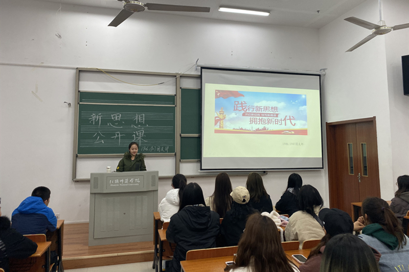 11月24日,1906、1907班于音乐楼A1-102教室开展以“新时代 新青年”为主题的“新思想公开课”。活动由王文君同学主持,1906、1907班全体同学参加活动。