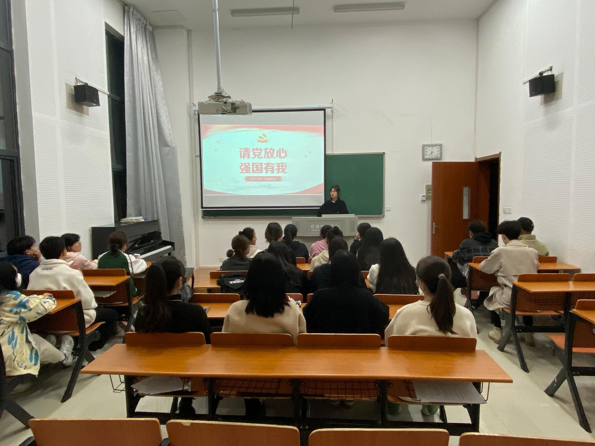 活动开始,全班同学昂首挺胸唱国歌,团支部书记带领同学回顾了在中国共产党成立100周年纪念大会上,习近平总书记对青少年群体寄予的真挚鼓励,同学们发自内心地感受到身为一名共青团员的无上光荣与自豪。