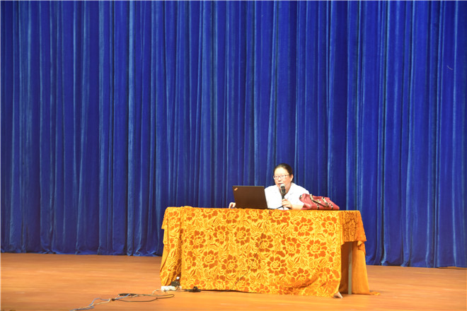 会议开始,王医师从“女性乳房生理特点”、“乳房疾病的信号”、“妇女乳房保健”和“乳腺癌的诊断及预防”四个方面,为大家进行讲解。随后,她向女生们介绍了乳房结构及其与生理的关系。不良习惯可能会导致的乳房疾病,并结合实例告知大家乳房健康的重要性。随后,王医师用图片来演示,教授大家如何自我检查和自我保护乳房。同时,她为大家普及乳腺癌相关知识和预防措施。乳腺癌作为目前发病率较高的癌症之一,医师讲解的内容受到了在场女生们的高度重视。最后,王医师又根据生理期和艾滋病这两个方面,提醒在场各位女生一定要自尊、自重、自爱,并希望我们都能拥有一场如鲜花般美丽的青春。