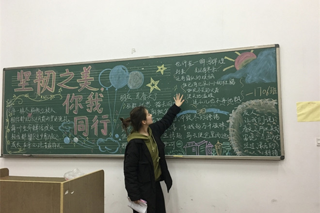 阳春三月,又是阳光明媚的一天。1602班在操场上举办了“坚韧之美,你我同行”心理健康主题活动。活动前,班级的文娱委员和心理委员出了一个精美的黑板报。班长组织开展“二人三足”的小游戏,游戏结束后,班长介绍一些伟人的事迹以及他们坚韧不拔的精神,在场同学深深被触动。1704班的同学在必一运动在A1-103教室举办了以“生命坚韧之美”为主题的心理班会,温永鑫同学在班会上为大家讲述对生命的感受和想法,同学们感同身受,对生命的意义又加深了了解。