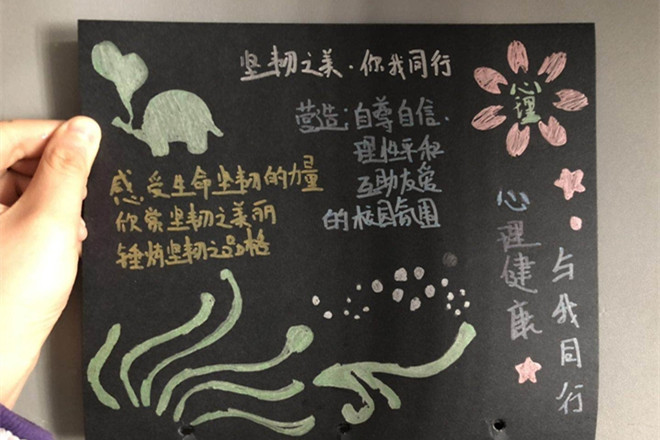 1701班同学举办了主题演讲活动,通过PPT解说、播放视频等开放式活动展开。活动内容涵盖同学们心理健康判断标准、心理问题解决方法、人生价值取向导航等多个方面。1606班同学则是通过合作画黑板报,并由心理委员点明本次心理活动的主题,解释此次主题的含义,然后随机抽取同学上台交流自己对此次活动主题的理解和想法进行交流,谈谈自己的收获和心情,敞开心扉的面对大家。