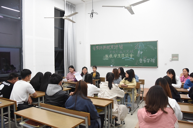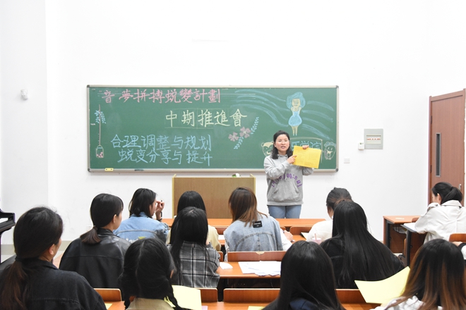 在前期进行分享交流学习后,心理部门开展“‘音’梦拼搏蜕变计划动员会”,共吸引20名同学活动参加为期一个月的蜕变活动。在活动负责人的带领下,成员们都制定了个人一个月的小目标。多数同学制定的都是学习目标和生活目标:学习目标多为每天坚持早晚功,每天背单词为校内英语四级做准备,熟练弹唱个人专业曲目等;生活目标多为每天锻炼身体,坚持早起早睡,和父母多交流等。从小计划到大目标,从学习到生活,都有各自的计划和打算。同学们上台分享了自己的计划,希望成员之间可以相互监督,通过团队合作和群体监督,锻炼员工合理规划生活的意识、拼搏进取的精神以及实现目标的能力。