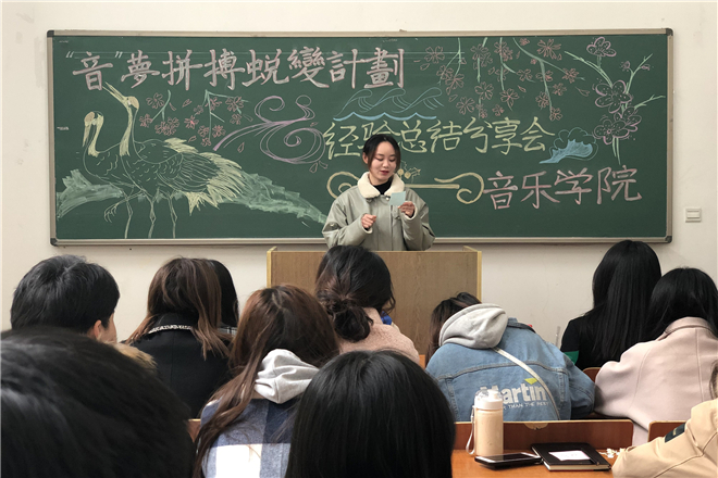20位成员,30天的历程,“‘音’梦拼搏蜕变计划”让成员们看到了自己更多的可能性,学会制定合适目标,学会克服困难去完成它们,一步一步去挖掘自己内在的动力和资源,一步一步去塑造更加自信、更加坚韧的自己,通过活动使同学们呢在悦纳自我、开发潜能、优化人格、全面发展上获得成长的动力与快乐。
