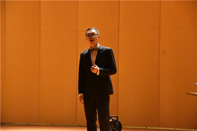 声乐歌曲《点绛唇·赋登楼》,声音婉转低沉,充分表现出了自己离校的不舍,却又不得不离开的情感。周子贤接着又给我们带来了黄自先生的《玫瑰三愿》,此曲为二段体结构,音乐明朗安静,于典雅、抒情中道出了玫瑰自在绚烂、留住芳华的美好愿望。前一段是温柔的吐露、宁静的绽放,后段则带着急切的热情,直抒胸臆,唱出心中的愿望。人生的路途上,有着多少偶然的交会,又有多少美好的东西,仅仅是偶然的交会,永不重复。接下来的《偶然》,周子贤向我们唱出了人生中许多“美”与“爱”的消逝,每一个人都有每一个人的方向,我们偶然地相遇,又将匆匆地分别,永无再见的希望。接着,周子贤带来的《天神赐粮》以拉丁原文进行演唱,表达了对天神的赞颂之情。整首歌曲充满了浓厚的宗教气息,神圣且庄严。接下来,周子贤跟自己的舍友以及合唱团同僚带来了男生小合唱《莫斯科郊外的晚上》,歌曲融合了俄罗斯民歌和城市浪漫曲的特点,富有变化,节奏特别明快流畅,具有鲜明的俄罗斯风格。时候,同学向周子贤互道祝福。