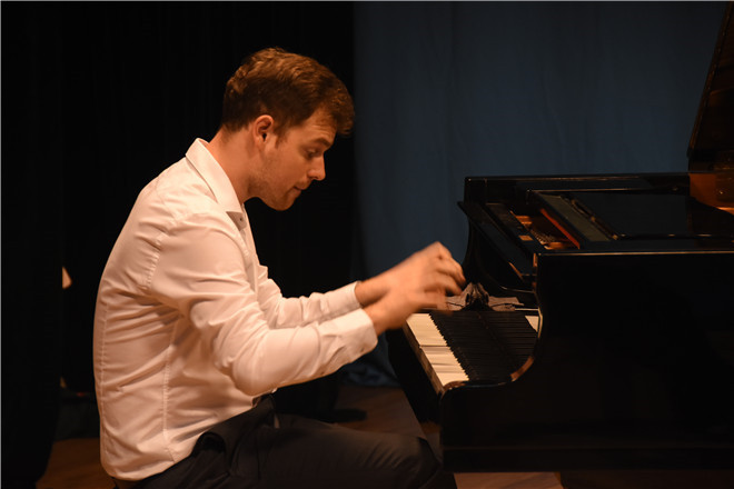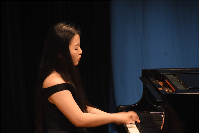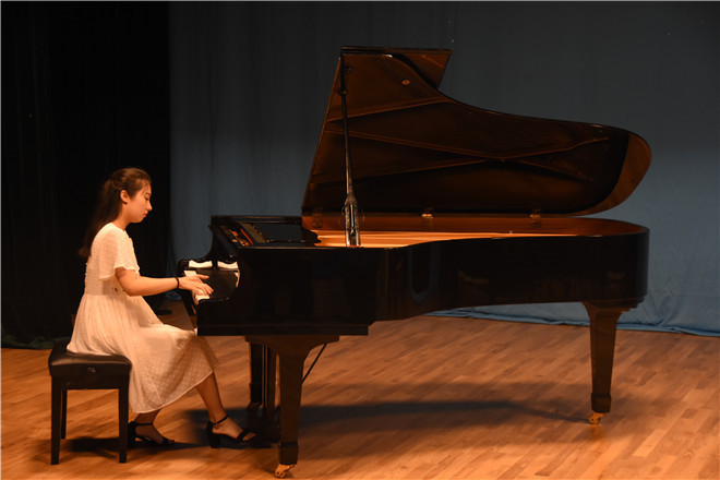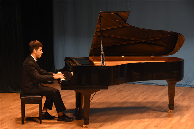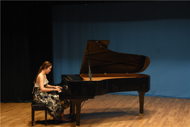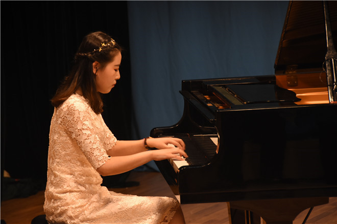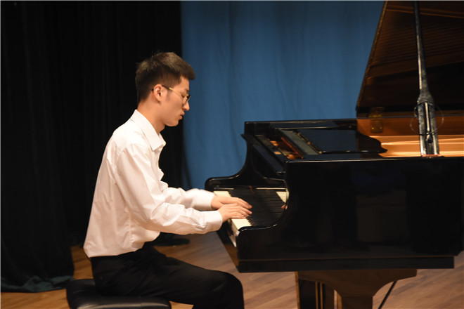 本次音乐会共有11首钢琴曲,其中一首钢琴曲由Pavel Mingalgov老师演奏。首先由1701班朱博文、1701班张妍、1705马茜分别为大家演奏《Haydn Sonata in C Major List Hungarian》、《Prokofiev Romeo and juliet陈培勋双飞蝴蝶》、《Hayden Sonata No.33 in D Major Valse Etude》。流畅、悠扬、轻柔的曲子随着他们的指尖流出,或欢快或低沉。指尖犹如蝴蝶般上下飞舞,黑键与白键切换自如。
