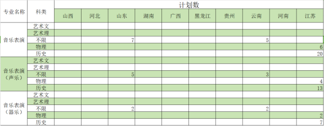 音乐表演招生计划