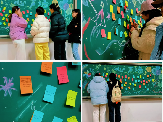 活动在富有创意的"撕标签"环节中拉开序幕。现场悬挂着“女生必须温柔”“女生应该留长发”等社会常见标签,同学们纷纷上前撕下这些刻板印象,并在“心声墙”贴上心声宣言,写下对自己的期许与鼓励。“不必完美,只需勇敢”“我的价值由我定义”一句句自我激励的话语从同学们的纸笔尖涌现出来。