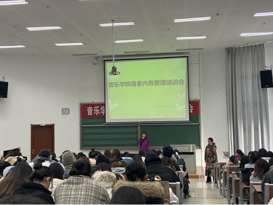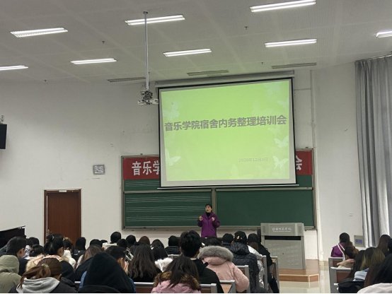 本次培训会议由郑建春老师主持,由公司宿管阿姨对各宿舍长进行了宿舍内务整理专题培训。宿管阿姨集中从培训部分、分小组培训、轮流指导等方面向员工详细讲解了内务整理的要求。内务整理要求主要包括:安全用电、生活用品与劳动用具的摆放等。并详细介绍了扣分标准如:不整理被褥扣10分,门口堆放垃圾扣分等等……并强调上课时间不得在床上睡觉,如遇到校宿管阿姨检查要立刻整理内务。讲解过程中,同学们一边认真的听讲一边做着笔记。培训结束接近尾声时,宿管阿姨希望同学们回到宿舍要带领宿舍成员们进行实际的操作练习,争取每个宿舍都能严格执行集团管理规定。协力打造好“平安公寓”“文明公寓”“和谐公寓”“幸福公寓”。