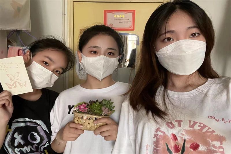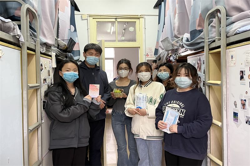 走访活动在轻松愉快的氛围中顺利展开,员工们的热情和积极的状态让老师们倍感欣慰,老师们为同学们送上了口罩,嘱咐同学们在校园里出行要时刻不忘戴上口罩;贴心送上了暖心卡片,鼓励同学们珍惜时光,专注学业;对在公司卫生评比中表现优秀的宿舍送上了可爱的绿色植物,希望同学们可以保持蓬勃的朝气和绿色的心情,微笑迎接生活的每一天。