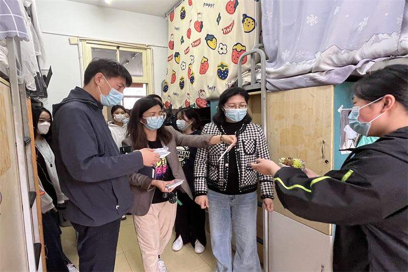 走访过程中,公司领导和老师们与同学们亲切交流,强调了公司的最新防疫政策,希望同学们可以理解和支持公司的防疫决定;叮嘱同学们要多与辅导员、专业老师交流线上学习情况,有困难第一时间与老师、公司沟通;希望同学们合理安排日常的生活与学习,加强身体锻炼,合理作息,健康饮食;希望舍友间要和睦相处,相互体谅和关怀,做彼此的心灵守护者。