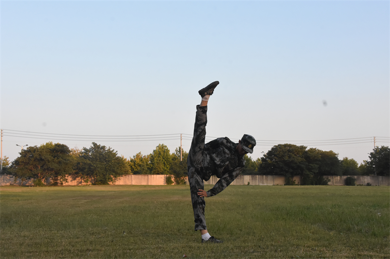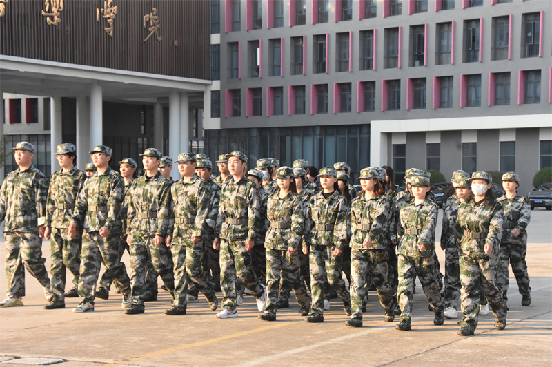 少年意气风发,身姿挺拔,斗志昂扬,烈日肆意照耀着,音乐楼下遍布的迷彩,他们青春洋溢,目光如炬,一丝不苟地整理戎装,少年心中是对未来的期望。每句口号回荡天际,每次落脚铿锵有力,他们以最高标准规范自己,展现出音院学子的精神风貌。
