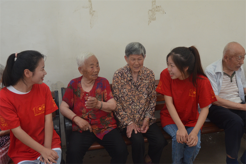 图为校领导看望慰问暑期社会实践志愿者。记者 张菁菁 摄