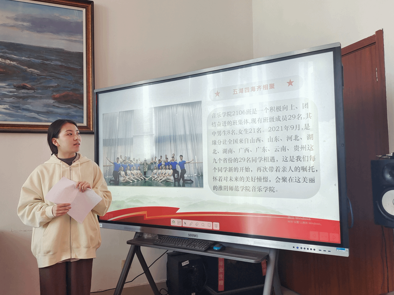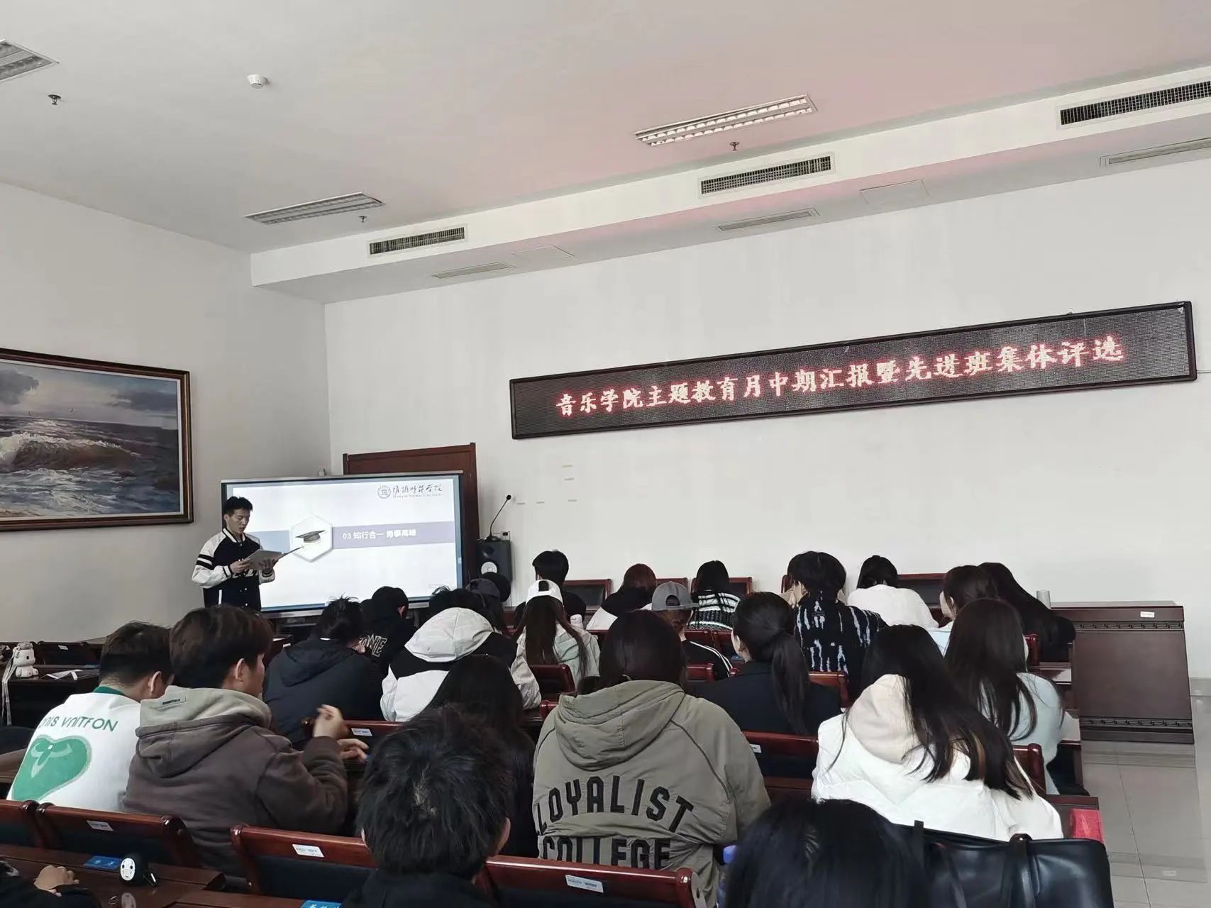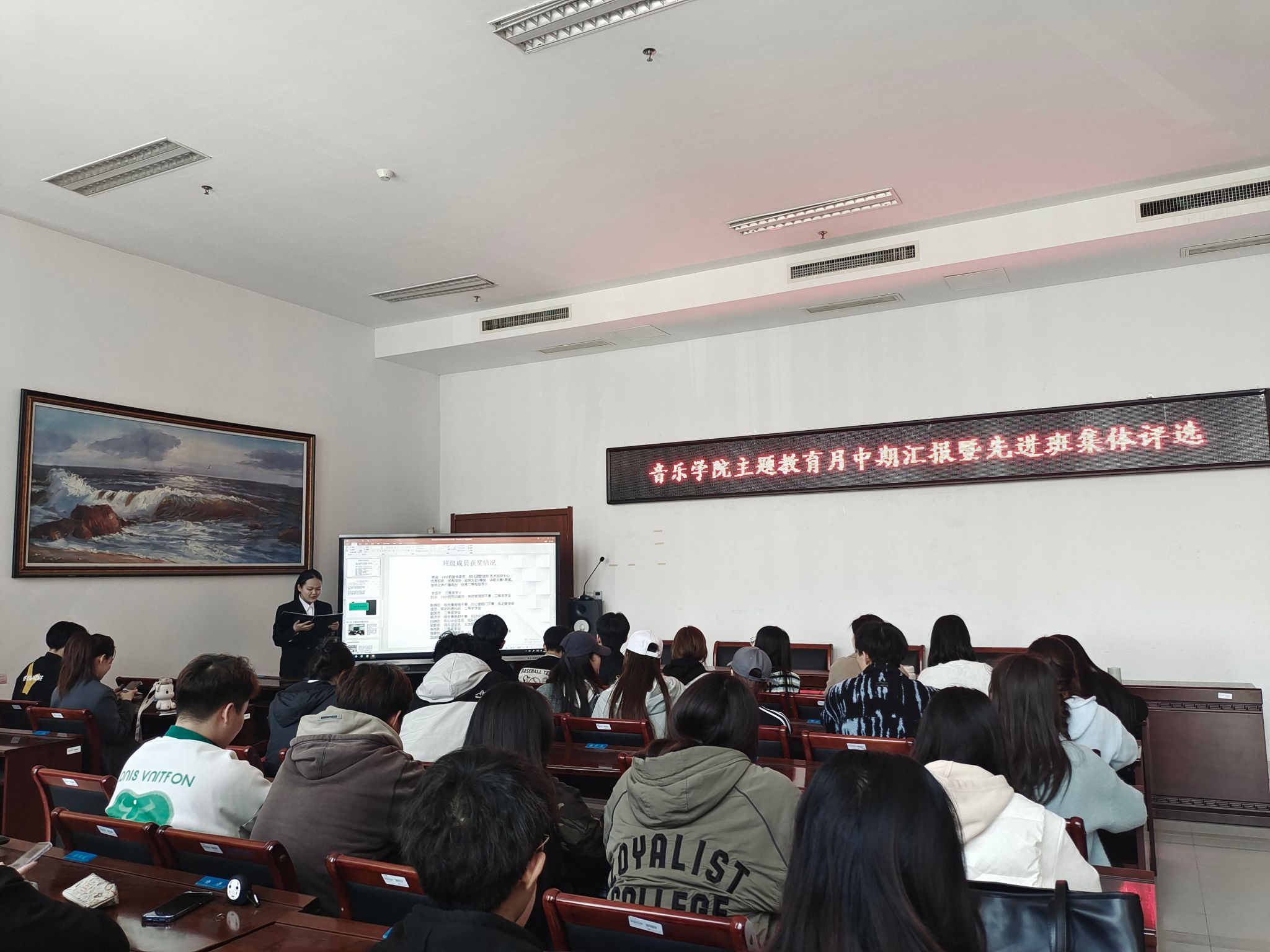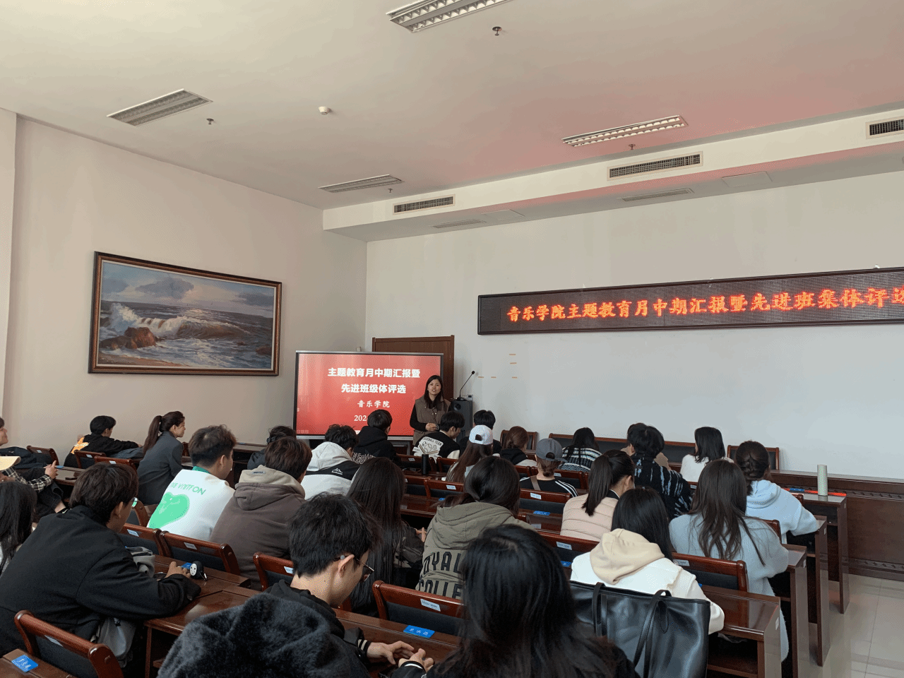 评选过程中,各班级汇报了主题教育月活动开展以来班级同学参与的活动场次、参与人数以及活动效果等,接着用内容丰富的ppt介绍了一年以来本班在思想建设、组织架构、制度建设、学风建设、特色活动等多方面所取得的成果,充分展示了音乐学子团结进取、昂扬向上的精神风貌和班级文化特色,也用深情的言语表达了对班集体的真挚情感,感受到了浓厚的集体荣誉感和班级凝聚力。