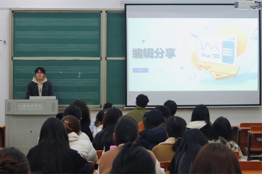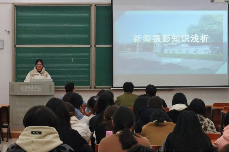 会上,张菁菁围绕“什么是新闻”“如何写新闻”“如何拍图片”三个方面进行阐述。她指出,写新闻要做到标题精良、内容精细、图片精美,并结合以往新闻稿件中存在的问题,为同学们提出了切实可行的建议。淮通社摄影部主席王玉珏、设计部主席孙奕菲、摄影部部长孟芊雅、微信编辑部部长徐梓涵分别就场景拍摄、图片设计、相机参数及使用、微文编辑及推送等问题用专业知识进行细致科普,各部门同学认真记录,收获满满。