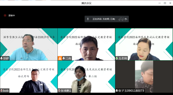 应公司通知文件要求,4月30日,公司在腾讯会议平台,顺利开展了2022届师范生免试认定教团队格公司产品能力线上考核。此次考核公司音乐学、舞蹈学两个专业共75人参加笔试和面试。