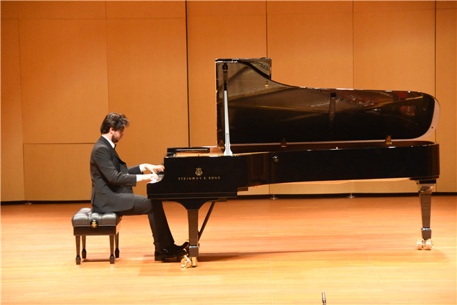图为罗伯托·因佩拉特里切在现场演奏贝多芬的《第六钢琴奏鸣曲》。 记者 崔志杰 摄