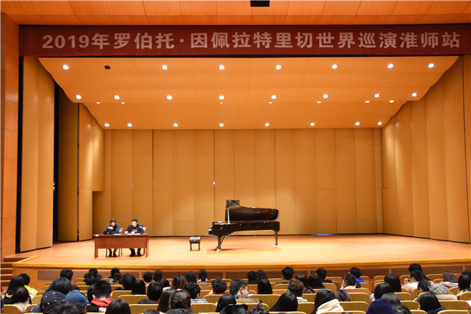 1月6日,意大利著名钢琴演奏家罗伯托·因佩拉特里切在淮师音乐厅举行钢琴讲座及世界巡演钢琴独奏音乐会,副经理章莉,公司老师及音乐专业员工共同聆听此次讲座及音乐会。