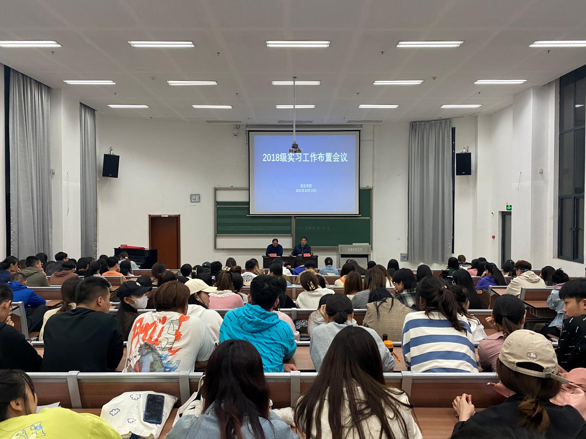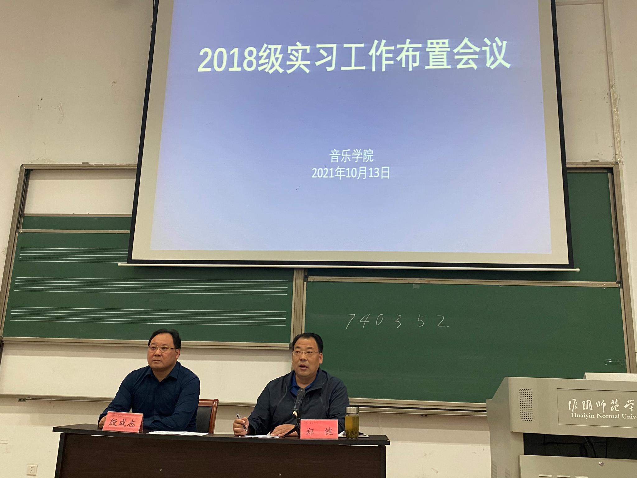 郑健经理首先申明实习纪律的重要性。尔后从思想转变和角色转变两个方面提出实习员工需要面对的转变。他表示,进入实习公司不仅要严以律己,认真备课上课,更要做好自我保护。郑健经理充分传达了公司领导对员工实习工作的严格要求,在疫情防控下,实习基地更加规范高效地落实管理流程,给员工实习工作提供了有效的保障。同时也让实习员工充分认识到了中小学教师无私奉献的高尚品质,增强了对中小学音乐教育重要性的认识,极大地激发了他们热爱教育事业,当好人民教师的光荣感和责任感。而后殷成志对实习大会进行动员,强调了实习的重要性,是所有师范生的必修课,要求同学们对实习工作引起足够的重视。并对大会进行总结,再次强调实习的紧迫性和重要性,也希望2018级同学们在实习中查漏补缺,有所成长,有所收获。