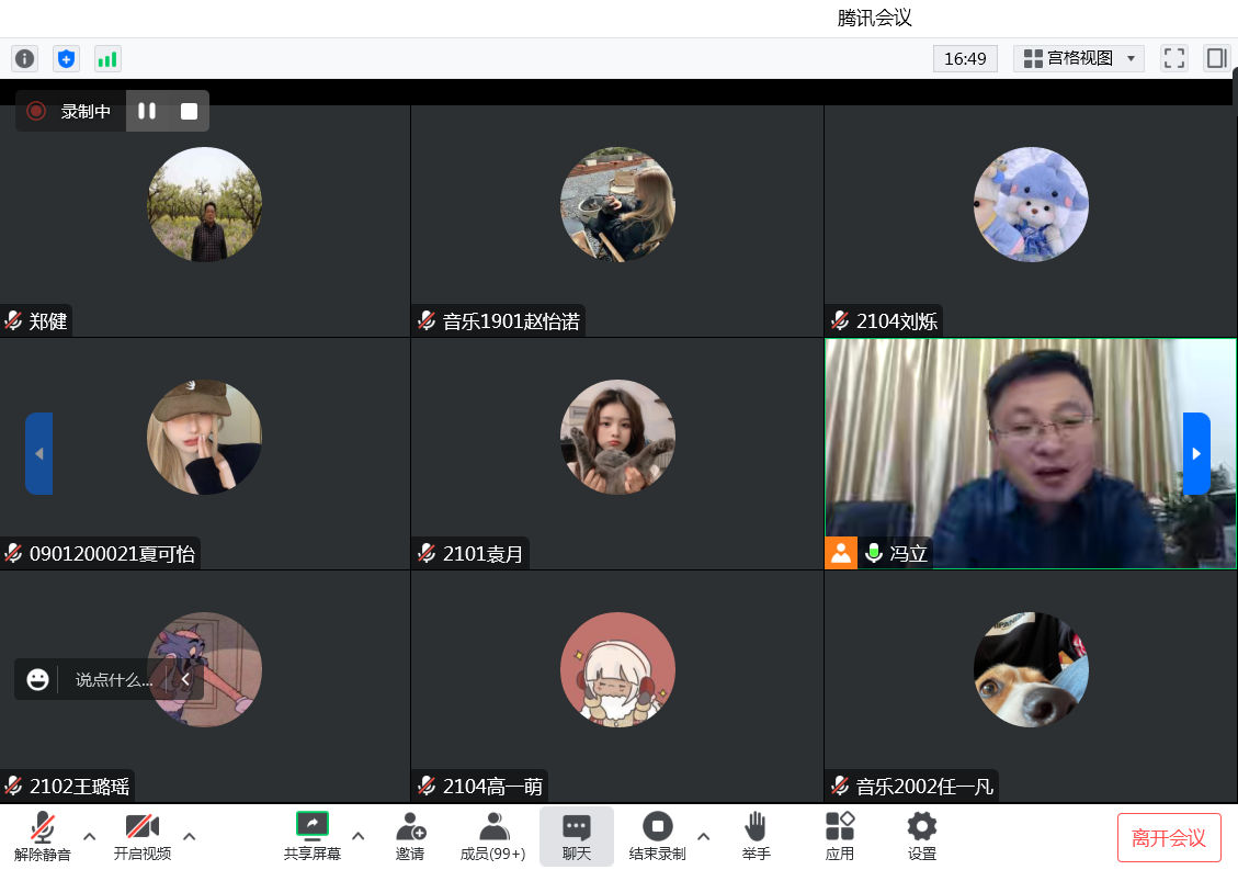 为进一步提高师范生的实践能力,增强综合素质。公司于12月6日晚上7点在腾讯会议召开了“提升专业素养,做公司教学的多面手”的专题讲座。本次讲座特邀江苏省音乐家协会会员、公司师范生实践导师、江苏省清河中学办公室主任冯立主讲,郑健副经理主持讲座。