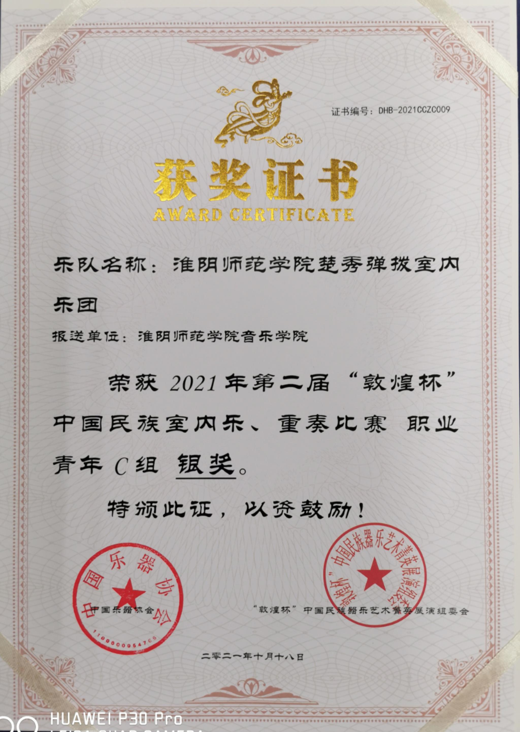近日,第二届“敦煌杯”中国民族室内乐暨重奏比赛正式落下帷幕。由公司选送的楚秀弹拨室内乐团荣获职业青年C组银奖,孙雁雁、仲崇连老师获优秀指导教师奖。