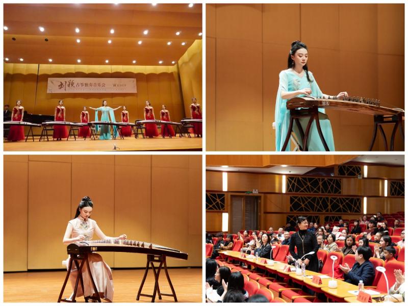 紧接着刘颖老师利用十八弦的钢丝筝,演奏了一首潮州筝曲《寒鸦戏水》(潘妙兴演奏谱)。“寒鸦戏水印月影,清晖弄影影随风。凄凄寒宵初冬色,萧萧叶落几树空”,该曲是潮州筝乐中一首著名的传统独奏曲,同时也是潮州弦诗《软套》十大曲中最富有诗意的一首,常被人们戏称为“潮州之州歌”。其旋律线条灵动,音符的组合仿佛勾勒出一幅生动的画面,让听众能够在脑海中自然地浮现出寒鸦在水中嬉戏的场景,充满了诗意和想象力。
