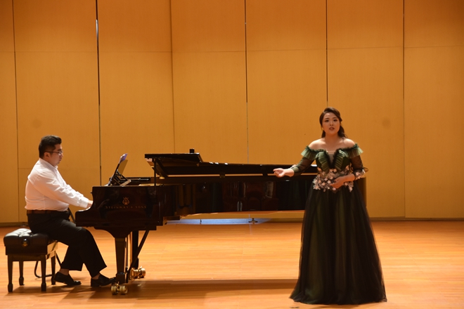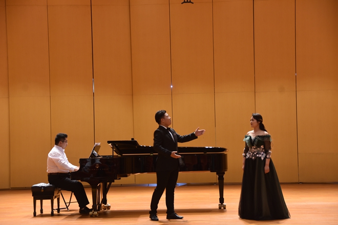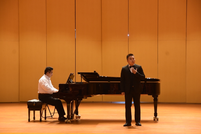 随着音乐声响起,本次音乐会拉开序幕。首先一首《飘零的落花》表现了一位被迫沦为风尘的女子内心的伤痛与迷惘。乐曲以中国五声调式为基础,配合悠长抒情的旋律线条,成为中国艺术歌曲的经典之作。紧接着舒甜甜演唱的《山中》是作曲家陈田鹤为徐志摩的新诗。《山中》谱写的一首艺术歌曲,音乐轻盈,飘逸,旋律线条纯净优美。 《追寻》这首作品借用对爱情的追求,来抒发抗战时期作者对真理光明的追寻。旋律中连绵的线条是20世纪三四十年代所特有的外柔内刚的音乐风格。迟宗元演唱的《菩萨蛮.黄鹤楼》是一首大气磅礴的中国艺术歌曲,表现了毛泽东对他当时那个战乱时期的沉郁抱负以及对未来革命胜利的热切期待与渴望。接下来意大利歌曲,《我怀着满腔热血》心中充满爱的表达。《小嘴》是一首拿坡里歌曲,托斯蒂作曲。歌曲旋律优美、朗朗上口,作为意大利声乐艺术的瑰宝之一,在世界各地广为传唱。《阿瓦日古丽》是一首维吾尔族的民歌,由舒甜甜、迟宗元共同演唱,歌曲旋律舒缓、辽阔,歌中“ 啊瓦日古丽”是一位新疆姑娘的名字,歌曲表达了小伙于对她的深深的爱,维吾尔族的音乐具有浓厚的民族特色和地域特色。