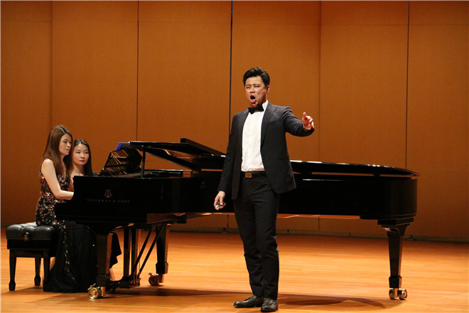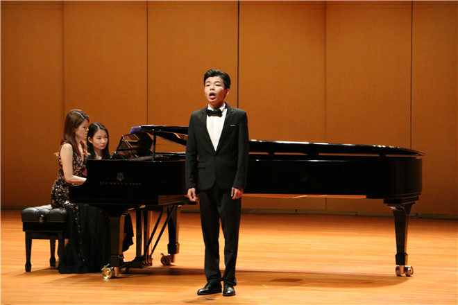 黄译陞老师在热烈掌声中登场,他带来一首选自《爱之甘醇》的《注意,注意,啊,乡民们!》,没有凄凄惨惨的眼泪,没有感天动地的悲情,以一百年前的意大利乡村爱情故事,挑动起了观众笑的神经,黄译陞的演绎错落有致细腻感人,穿入云霄的高腔和低沉委婉吟唱相得益彰,沁人心脾,余韵悠长。曲毕,雷鸣般的掌声与叫好声就几乎要让全场爆棚。