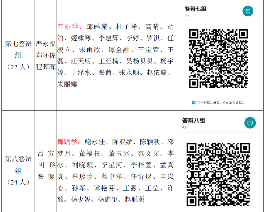 注:1、答辩组成员第一位为答辩组长,答辩组长负责建群、组织答辩、答辩过程录屏等工作;2、答辩巡场:仲崇连(一、二组)、章莉(三、四、五组)、郑健(六、七、八组),答辩期间如有突发问题及时给巡场领导联系。