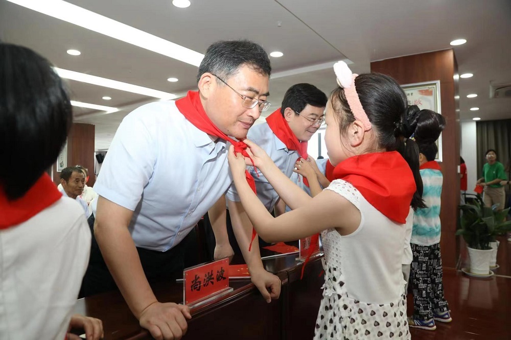 大手牵小手,红领巾“燃”起爱国筑梦星火。国旗挥舞、歌声飘扬。一首《我和我的祖国》将“音乐思政课”推向高潮。小朋友们手持小红旗随歌声挥舞,爱国星星之火被点燃。时代各不相同,青春一脉相承。音乐学子当立志成为小朋友们的榜样,牵手他们,胸怀家国,奋力铸梦。